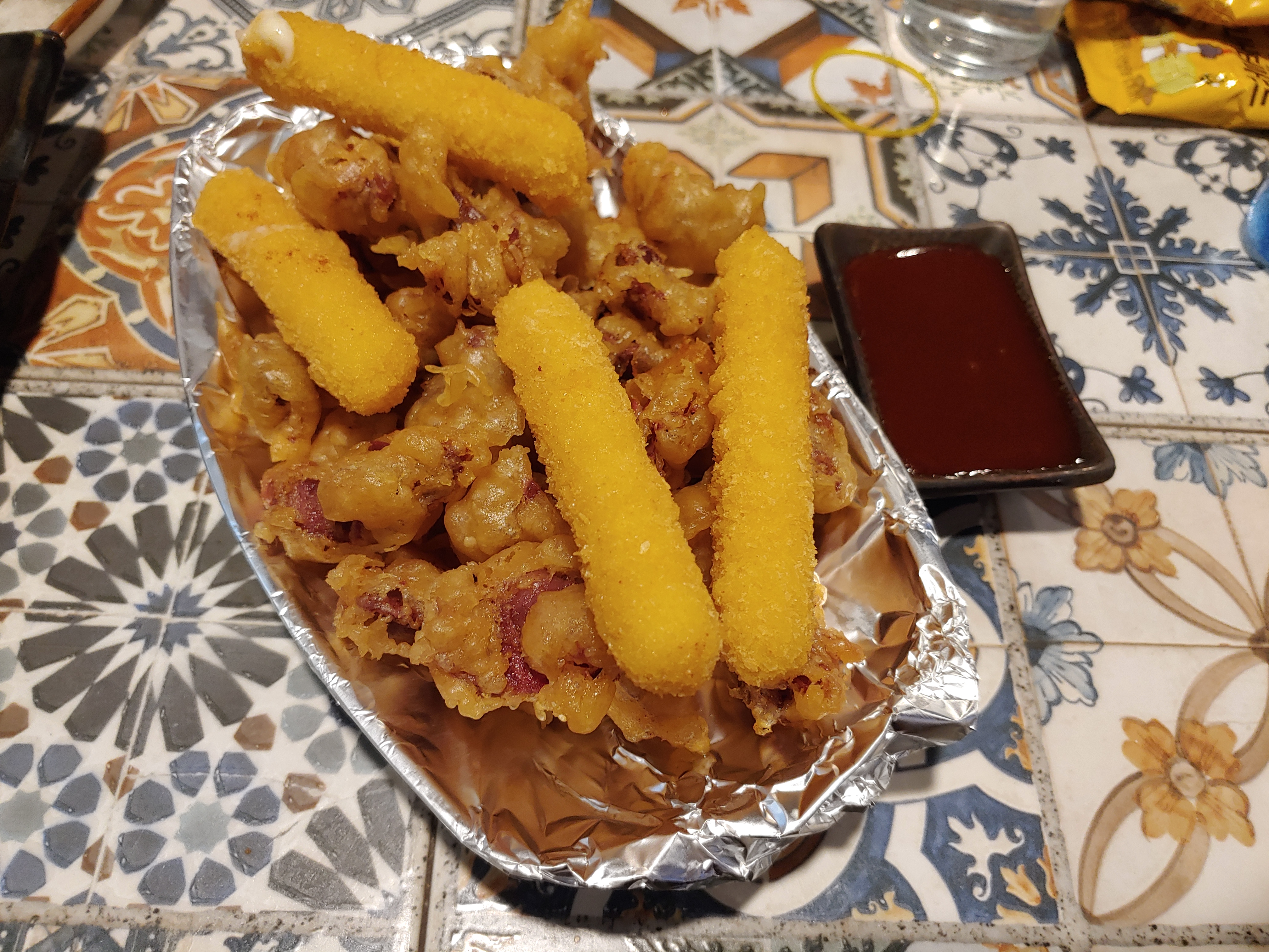 먹다 보니 아쉬워서 똥집 후라이드도 시켜보았다. 치즈스틱은 사장님께서 주신 서비스이다. 아무리 서비스라도 4명인걸 아시고 치즈스틱을 4개를 딱 챙겨주신 사장님 센스 엄지 척~!